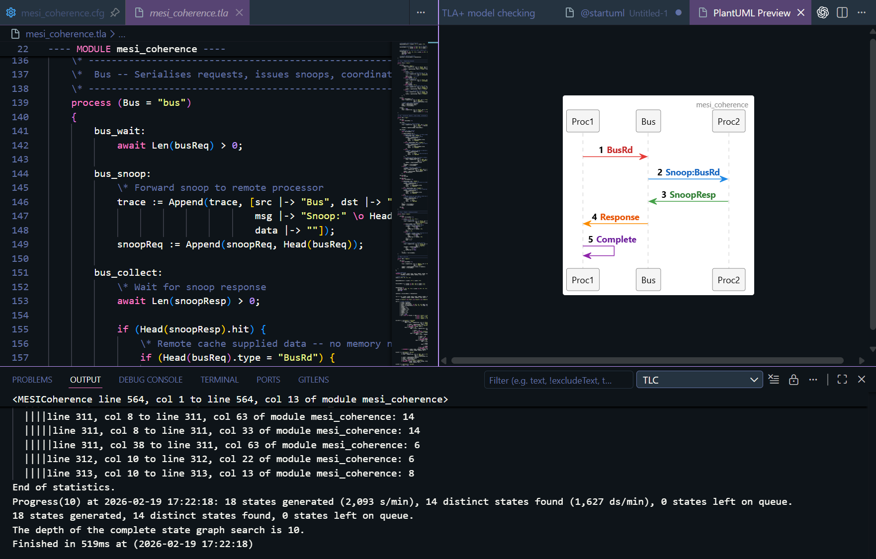 The time from “TLC found a violation” to “I understand what went wrong” drops from minutes to seconds. Over the course of a multi-week specification effort, that compounds into days of saved time — and the diagrams are documentation artifacts you keep.